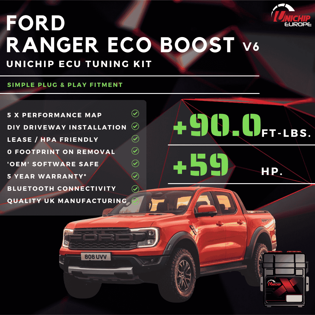 An additional 59BHP & 90 FT-LBS can be found with our V6 EcoBoost Raptor ECU Tuning Kit, as well as access to 5 versatile & unique to Unichip map settings - available to switch in real time. Including the ever popular Anti Theft Tune
